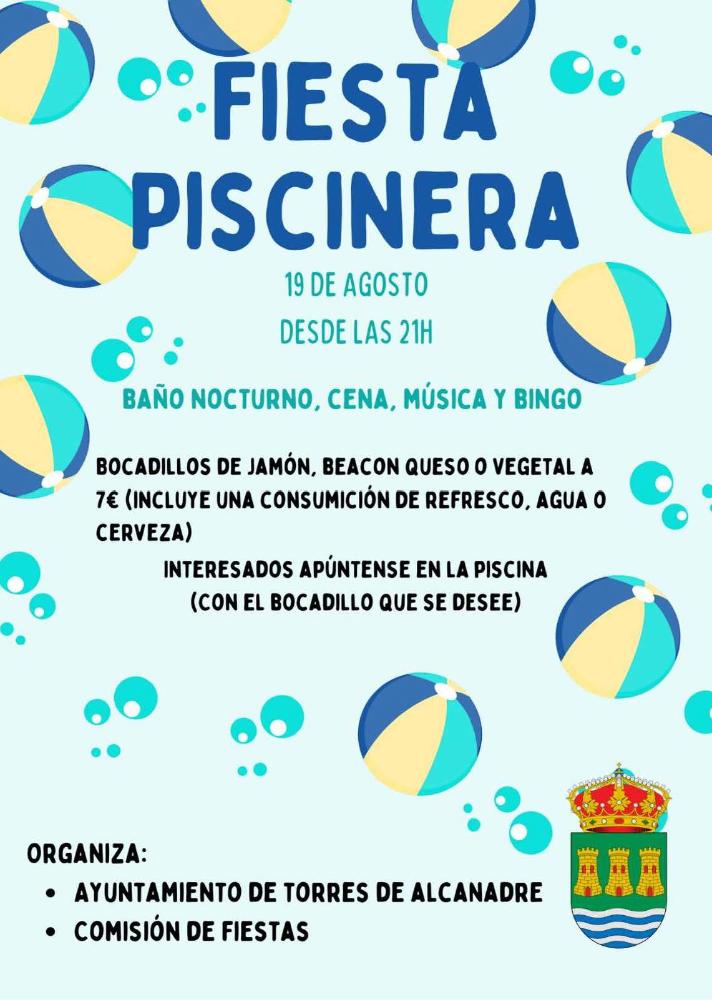 Fiesta Piscinera Whatsapp: Fiesta Piscinera Fecha 27 julio 2023 19 de agosto desde las 21h Baño nocturno, cena, música y bingo. Documentos FIESTA PISCINA.pdf (pdf 130,5 kB) Galería imágenes cat: Cultura, vaobulcary: 3702437 cat: Cultura, vaobulcary: 3702460 cat: Ayuntamiento, vaobulcary: 3702455